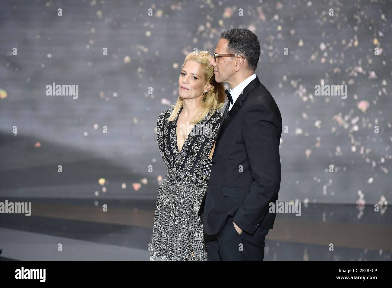 Marina Fois Und Roschdy Zem Wahrend Der Verleihung Der Cesar Film Awards 46th Im Olympia In Paris Frankreich Am 12 Marz 2021 Foto Von Pierre Villard Pool Abacapress Com Stockfotografie Alamy